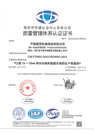 ISO9001質量(liàng)管理體系認證證(zheng)書