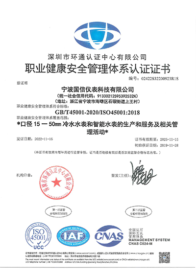 ISO45001職業健康安全(quán)管理體系認證證(zheng)書