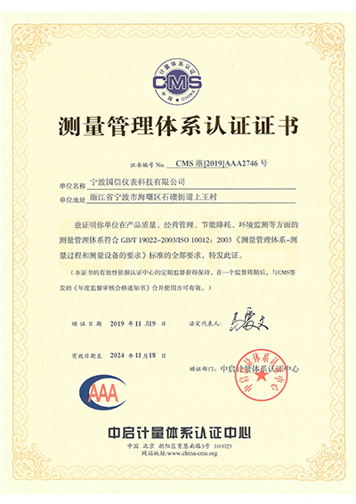 ISO10012測量管理體系(xì)認證證書