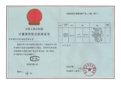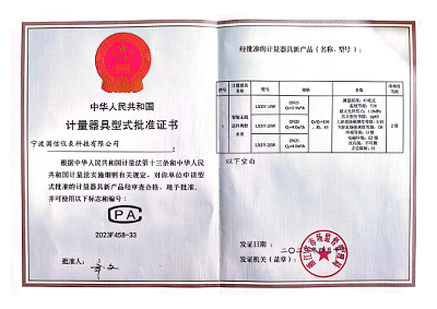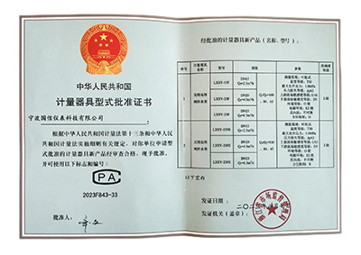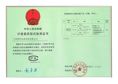 計(ji)量器具型式批準(zhun)證書